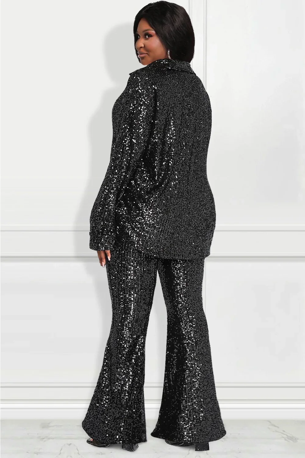 Bold, dazzling, and made to stand out — Vayla is the ultimate statement set for parties, nights out, or whenever you're ready to own the spotlight. Featuring a shimmering sequin V-neck top with dramatic flare sleeves and wide-leg elastic waist trousers, this look brings confidence, comfort, and head-turning glam.